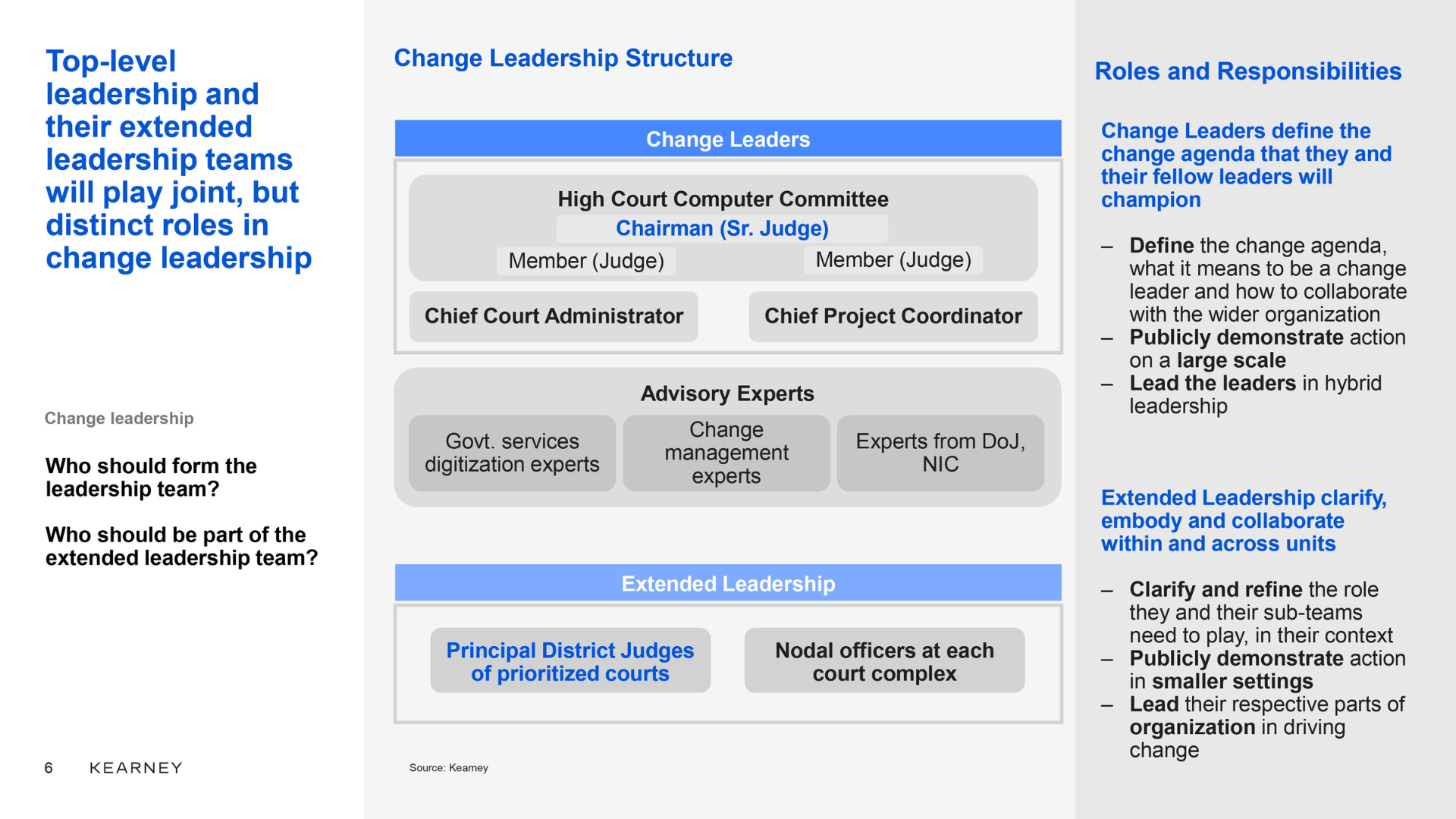 Change management must be owned and led, not outsourced or left to evolve ad hoc. It should be structured as a dedicated function, embedded in each High Court’s Computer Committees, with clear mandates and feedback responsibilities, which could look like: