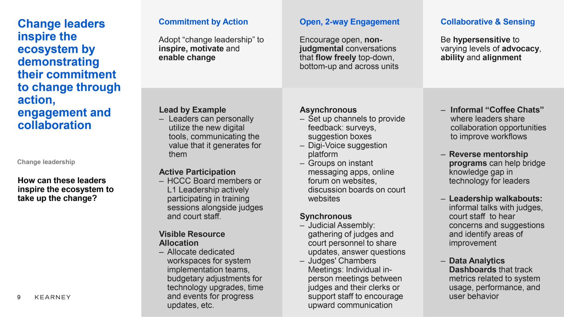 A. Top-Down Actors- Chief Justices and Court Leadership: Must champion reform, lend it legitimacy, and signal that digital change is an institutional priority.