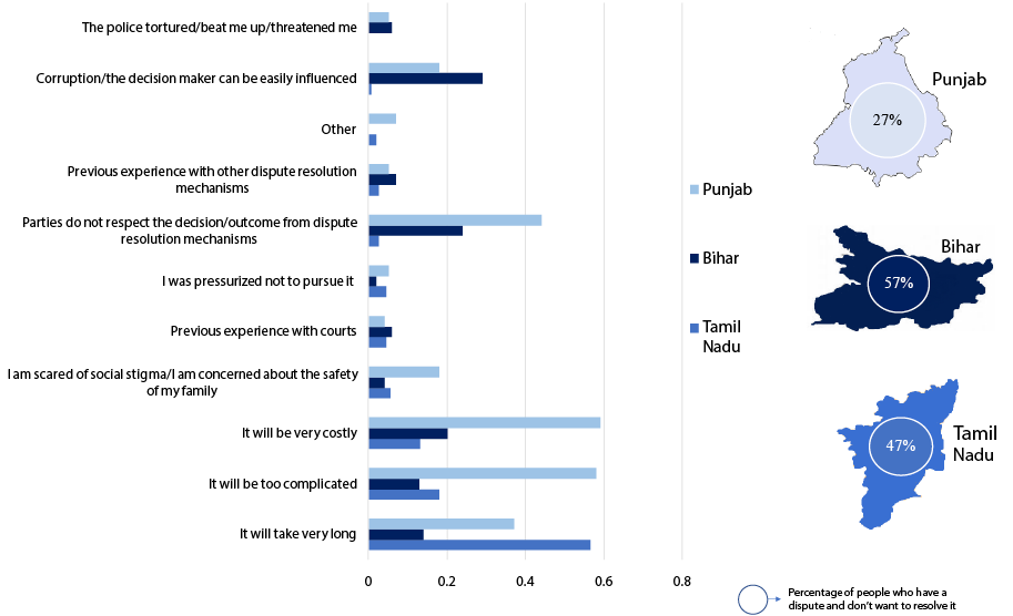 Figure 21. Reasons for Not Resolving the Dispute: Tamil Nadu, Bihar, and Punjab