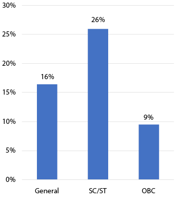 If we consider the caste-wise distribution of respondents who did not want to resolve their dispute, we find that 26 per cent of them belong to the scheduled caste (SC) or scheduled tribe (ST) category, and 9 per cent to the other backward class (OBC) category, showing that by and large, people from the disadvantaged castes amongst the respondents had disputes, but did not want to solve them.