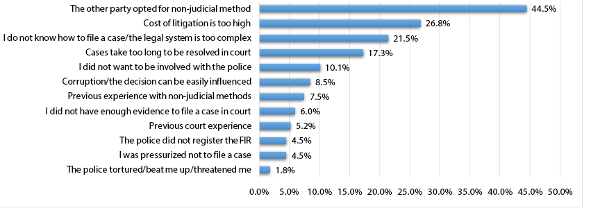 Around 54 per cent of respondents who went to court had previous non-court experience, of whom around 51 per cent said that their experience with non-court mechanisms had led them to approach the court system this time.