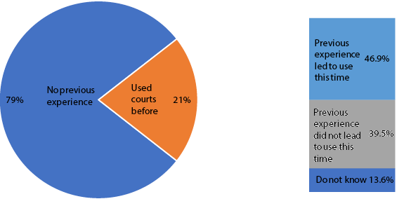 Of the respondents who used non-court mechanisms, 21 per cent had prior court experience. Of this, around 47 per cent said that their previous experience in court had led them to use non-court systems this time.