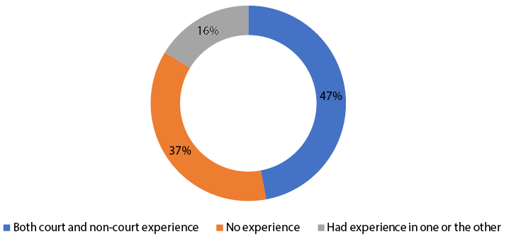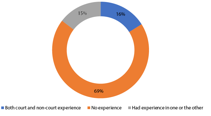 Among those who chose a non-court dispute resolution method, only 26 per cent had prior non-court experience, and of this number, around 46 per cent were led by their previous experience with non-court mechanisms to use a non-court mechanism again.