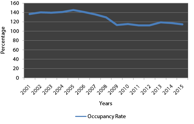 FIGURE 2. Occupancy Rate in Prisons (2001–2015)
