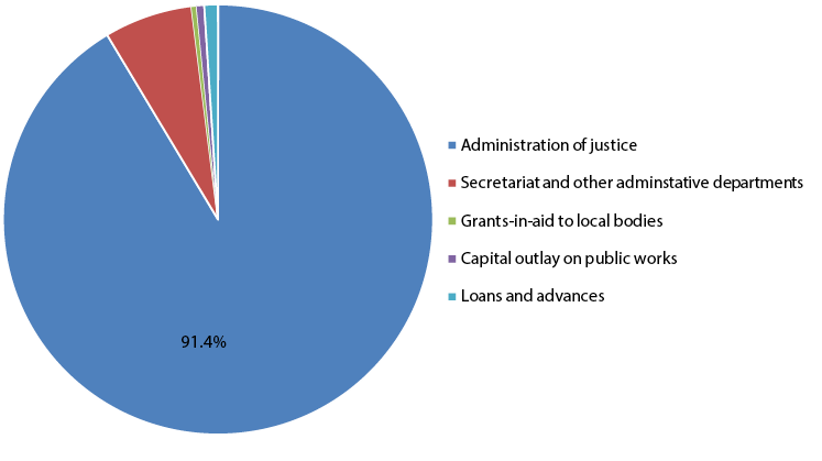 1. Administration of justice: This budget head subsumes programmes related to all the levels of courts within the judicial hierarchy. It covers the establishment costs of courts within the state.